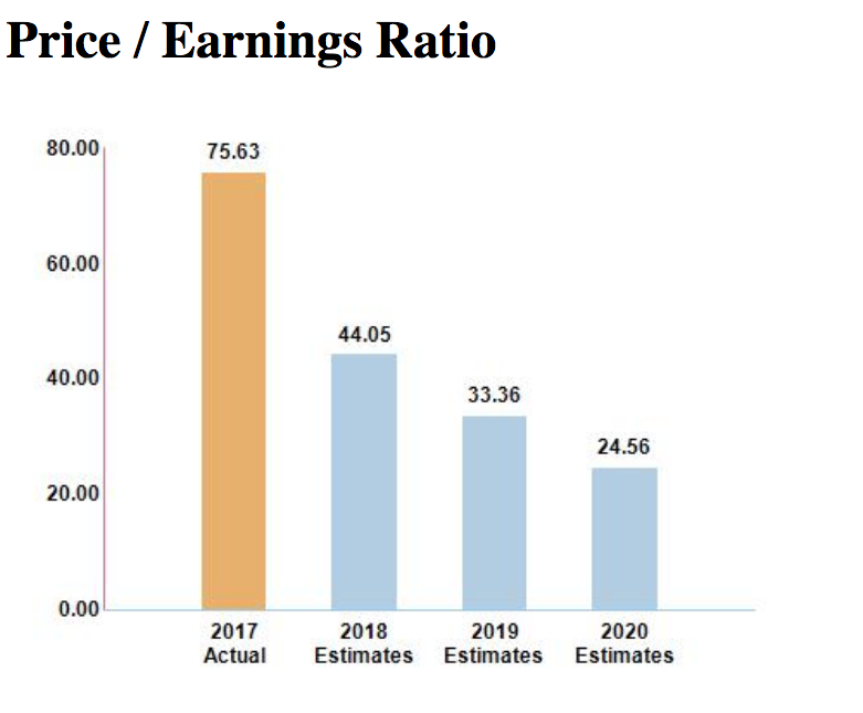 Ein aktuelles KGV von 75 hört sich erst einmal teuer an. Doch die offiziellen Analystenprognosen von NASDAQ.com zeigen auch wie schnell die Aktie in akzeptable Bewertungsregionen fallen kann.