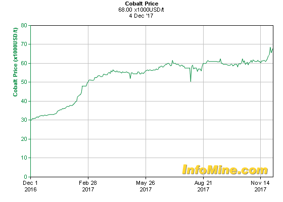 Dabei wird bereits für 2017 ein Defizit von 900t Cobalt vorhergesagt. Entsprechend hat sich der Preis für das Metal seit 2016 verdoppelt, weitere Preissteigerungen werden bereits erwartet.