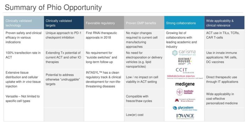 Phio konnte in den letzten Monaten mit seiner sRNAi-Plattform INTASYL bereits namhafte Forschungskooperationen landen. Unter anderem arbeitet man mit dem privaten Biotech-Startup Carisma Therapeutics zusammen, das seit Gründung vor drei Jahren bereits über 60 Millionen Dollar an Investorengeld einsammeln konnte. Auch das Helmholtz Zentrum München, an dem niemand Geringeres als der deutsche Staat beteiligt ist, forscht mittlerweile mit Phio-Technologie.